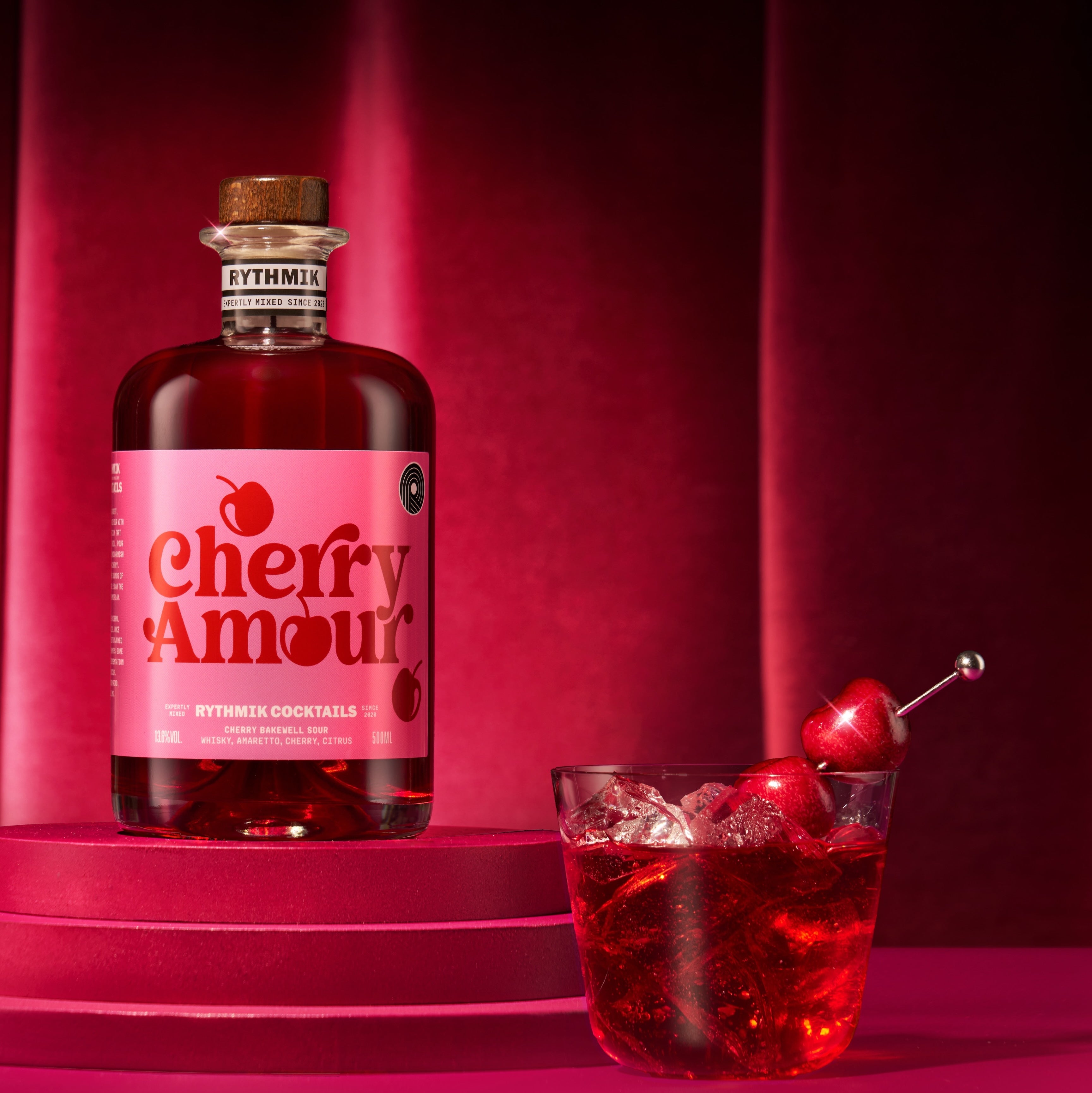 A modern take on a Cherry Bakewell , reimagined as a perfectly balanced sour, Cherry Amour is a seductive blend of amaretto, blended Scotch whisky, sour cherry and bright citrus. Think the lovechild of an amaretto sour and a whisky sour, finished with a lush hit of cherry.